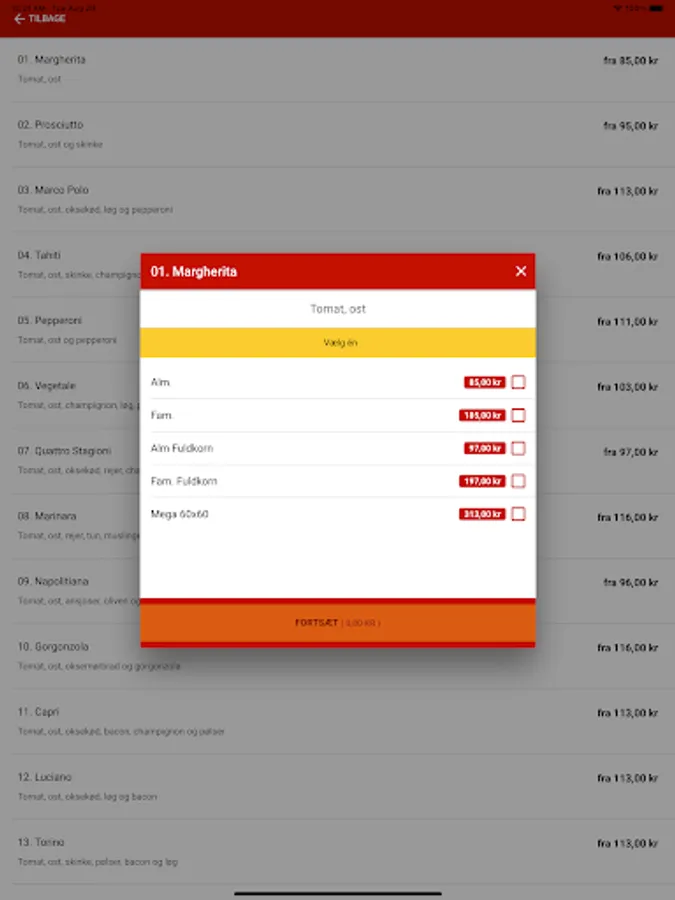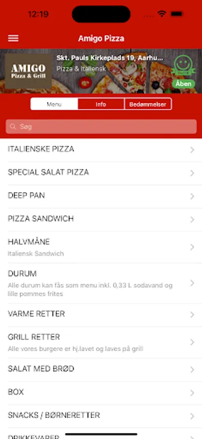 Bestil pizza, burger, pasta, m.m. med få tryk, nemt og hurtigt!