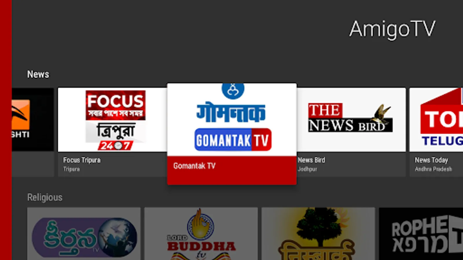 Amigo Live TV is an app from amigo infosoft private limited , Streaming Regional and local channels like News , Religious , Entertainment