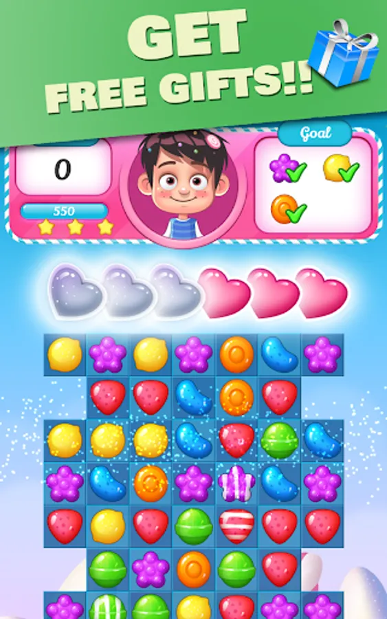 Try to solve puzzles by reaching tasty goals: break all the ice, cakes and cookies, unwrap candies, save the gummy bear, and collect canny cane! Great pace and cute elements/obstacles make this game so addicting!