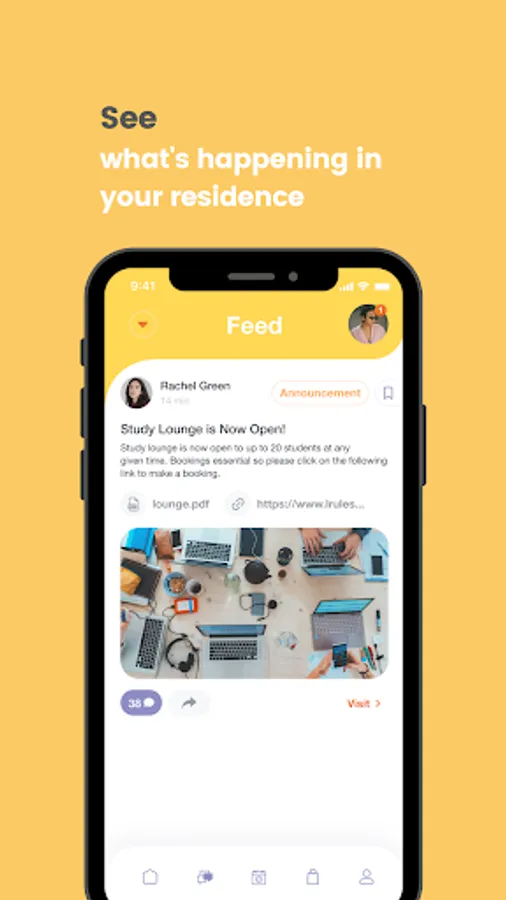 RESIDENTIAL FEED: This is where your management posts announcements, articles, notices, job openings or other information of interest. This allows you to keep track of everything that’s going on in your neighbourhood without switching platforms.
