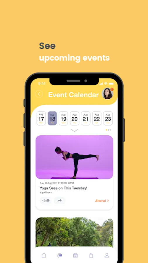 EVENTS CALENDAR: This is where you see everything that’s happening in your community – be it a yoga class or a networking event. This helps you keep track of all the events in community that are coming up. Don’t worry, we’ll also notify you!
