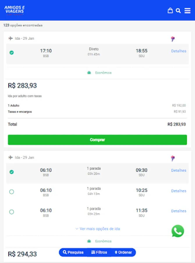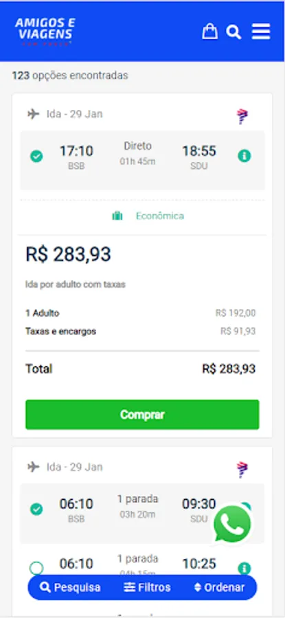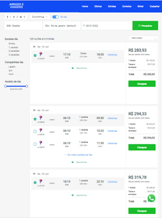 Compare airfare prices offered by the country's main airlines and save more.