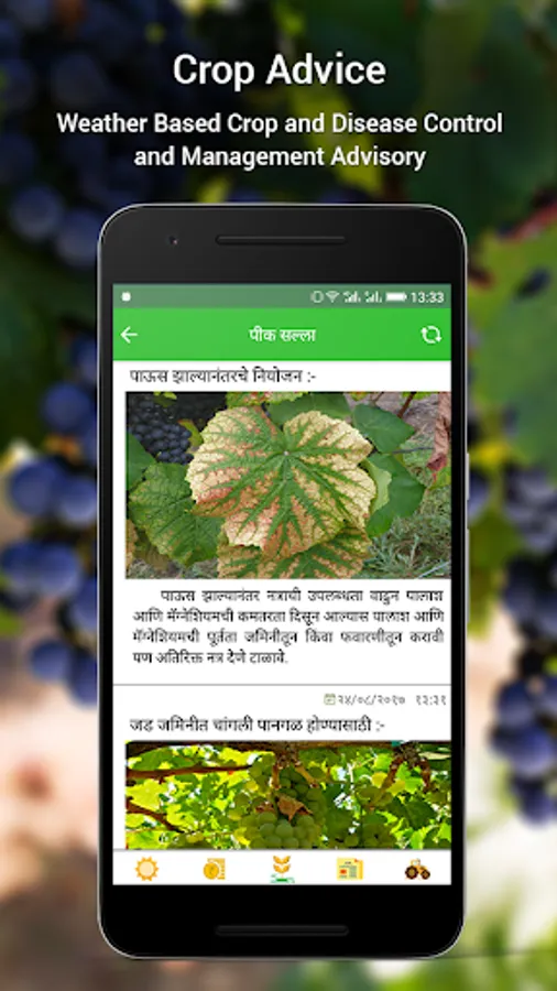 Crop advisory: contains advisory information based individual member’s area climate, crop, age of crop, topography and geology, irrigation facilities available and adopted, soil type, disease control and curative methods and practices pertaining to the above so as to avoid repetitive occurances based on microbial life patterns and adaptation siginificant in the vicinity.