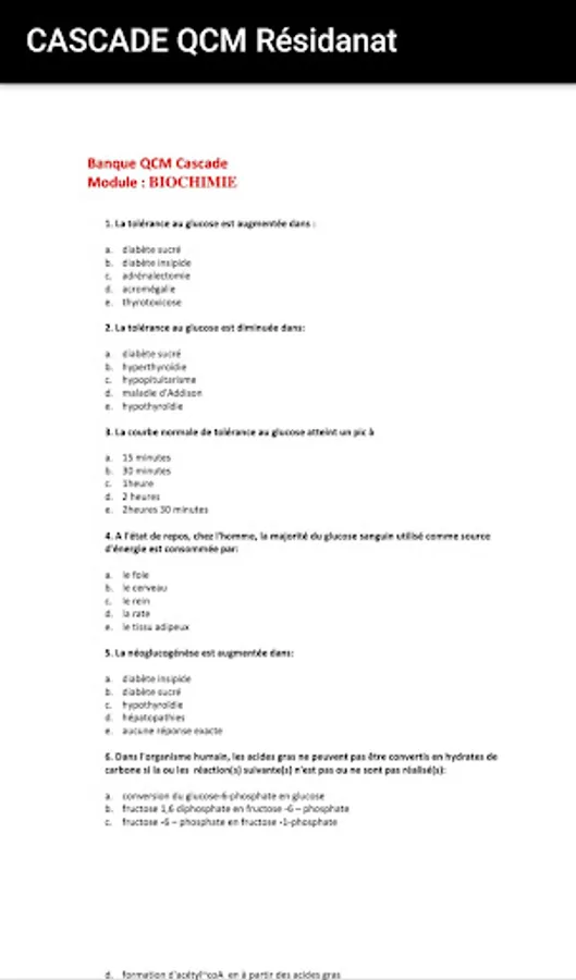 BANQUE QCM CASCADE - part Basic Sciences (BIOLOGY) -