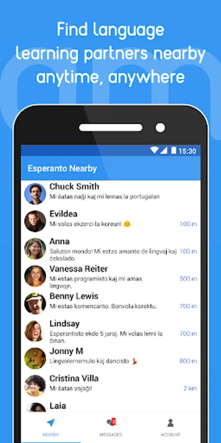 Trovu kaj kontaktu tuj lingvemulojn apude. Ni estas la sola apo, kiu ebligas trovi parolantojn de 7.000+ lingvoj inkluzive de la ĉina, Esperanto, franca, germana, Ido, Interlingvao, itala, japana, kataluna, kimra, nederlanda, okcitana, pola, portugala, rusa, kaj Tokipono, ĉio estas SENPAGA! Ankaŭ ni subtenas 100+ signolingvojn kiel ASL kaj Ozlano.