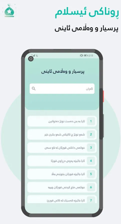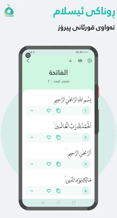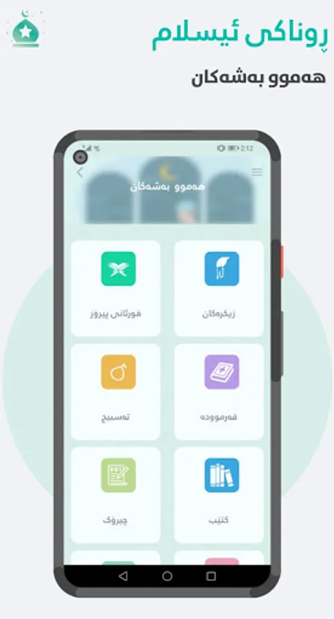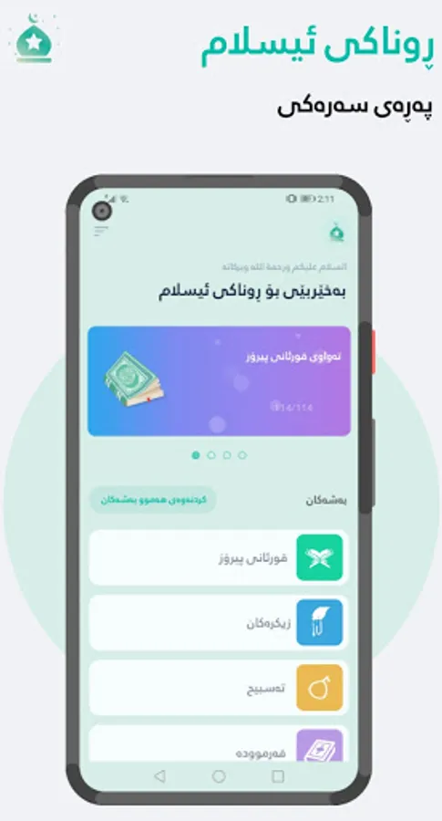 ئەپلیکەیشنی ڕوناکی ئیسلام ئەم بەشانەی لەخۆ گرتووە :