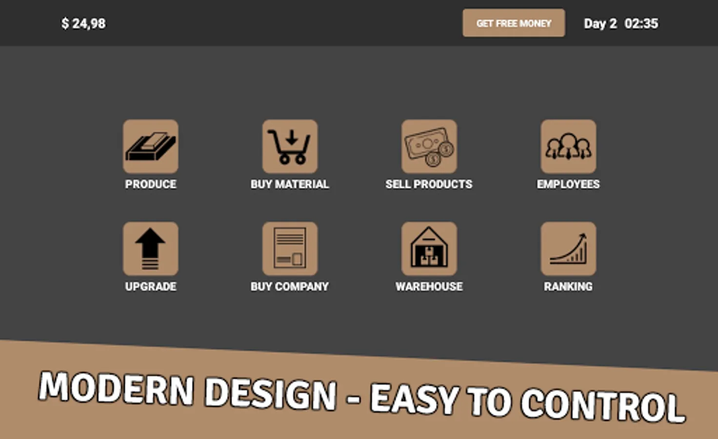 This business game contains an interesting gameplay, the possibility of hiring new employees, the possibility of improving machines in the company, the possibility of buying other companies.