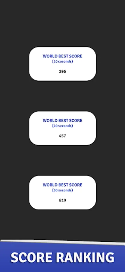 The app contains 3 game modes (10 seconds, 20 seconds and 30 seconds).