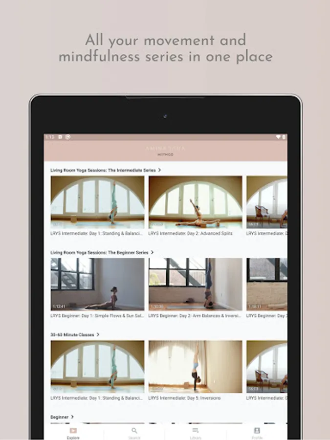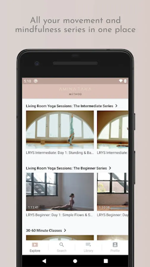 The Amina Taha Method app offers you an extensive library of classes to suit every lifestyle. This platform combines all of your movement and mindfulness series into one place. It’s designed to be accessible, so that you can fit mindful movement into your daily life, no matter how much time you have or where you are in your fitness journey. You will have access to a growing library of yoga, flexibility, Pilates, barre, sculpt and guided meditation classes, with new content updated weekly for constant inspiration.