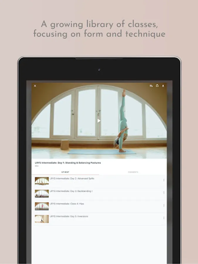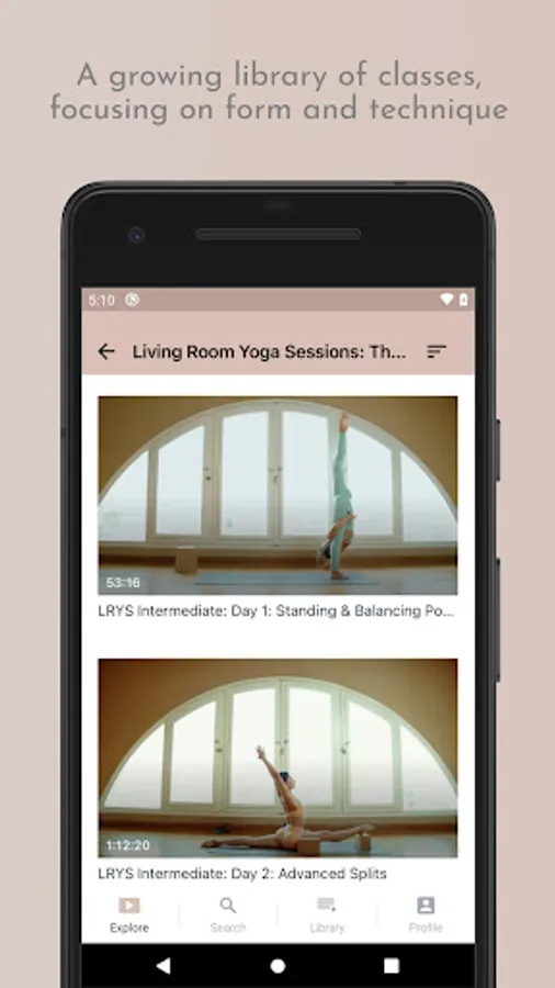A growing library of classes which includes methods from yoga, pilates, barre, and sculpt