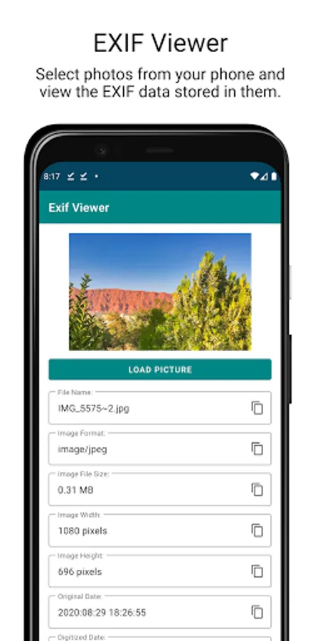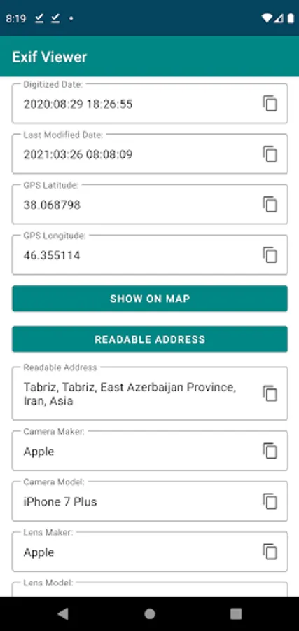 Whether you're a professional photographer or a hobbyist, this app is an essential tool for anyone who wants to better understand their photos. You'll be able to access all the details about your camera type, exposure, aperture, focal length, ISO speed, flash, resolution, and even the GPS location data, if it's available in your image file. And the best part? All the data is processed locally on your phone, so your photos are never uploaded anywhere on the internet.