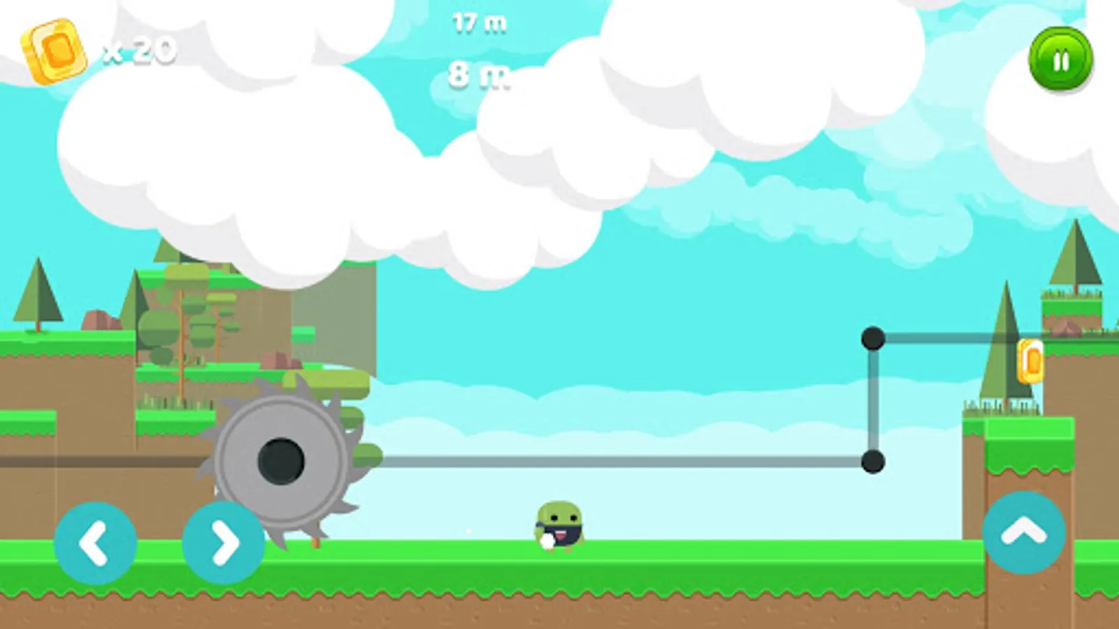 Green man runner is an adventure game, in which players should keep the character alive and away from the enemies. The character is trying to survive and return back to the secure jungle. The challenge is completing levels with good score, A single mistake might result the end of the game and being over. The jungle green man runner is trying to collect the coins as much as he can and avoiding the obstacles (Sharp Spikes, Rotating Sharp Wheels, water, Blocks) by running and jumping over them. The game doesn't need any internet connection, Players can simply tap button to move the character.; and there are many challenging levels! With the beautiful graphics and sound as well as. beatable missions, avoidable traps, and solvable challenges.: