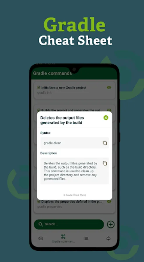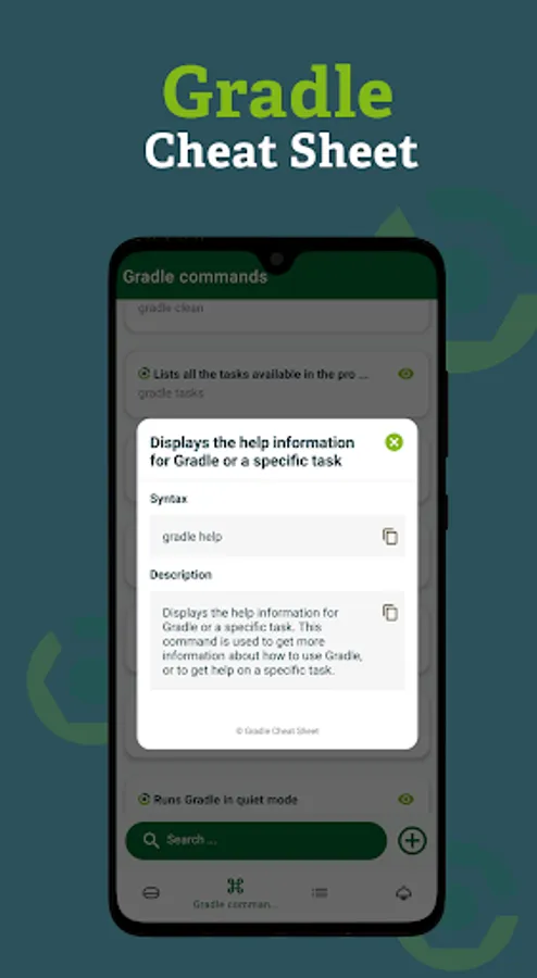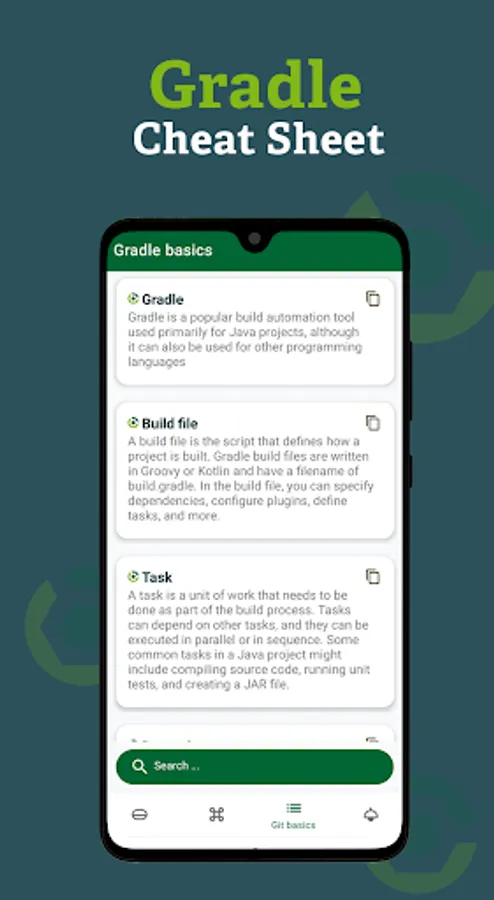 The "Gradle Cheat Sheet" mobile app is a comprehensive and user-friendly tool designed to assist developers and build engineers in mastering the Gradle build automation system. Gradle is a powerful open-source build tool used for managing and automating the build process in various software projects.