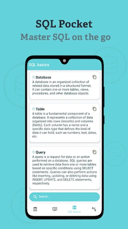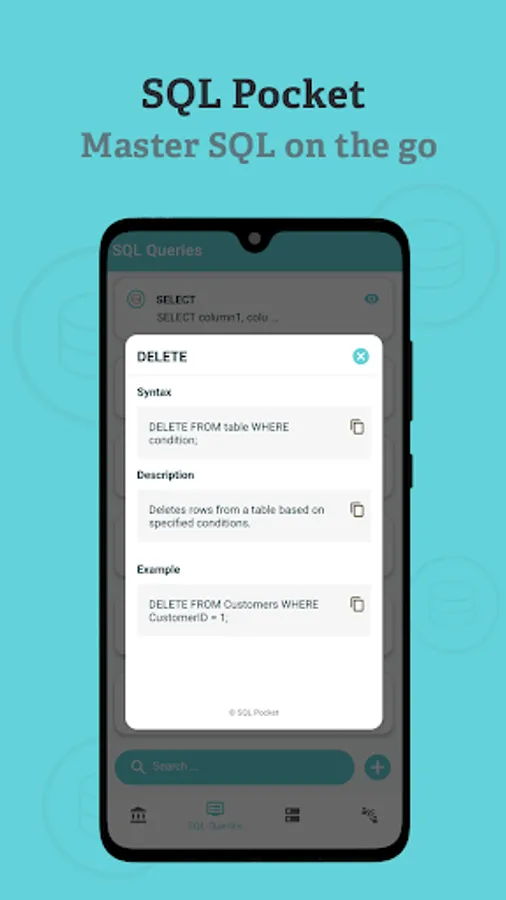 SQL Pocket is a comprehensive mobile application that serves as a handy reference guide for SQL queries and fundamental concepts. It is designed to assist both beginners and experienced professionals in mastering SQL language and database management.