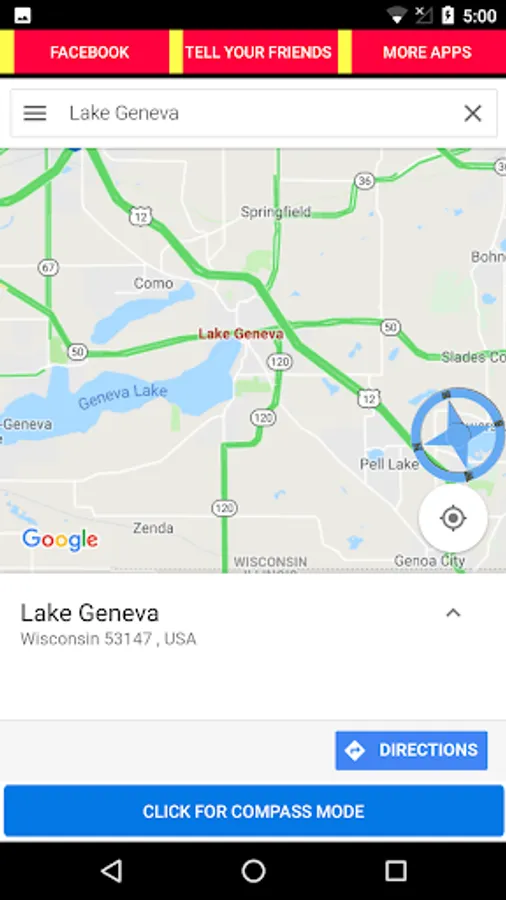 This app is combination of Google maps and a compass to show you your directions to North, South, East and West.
