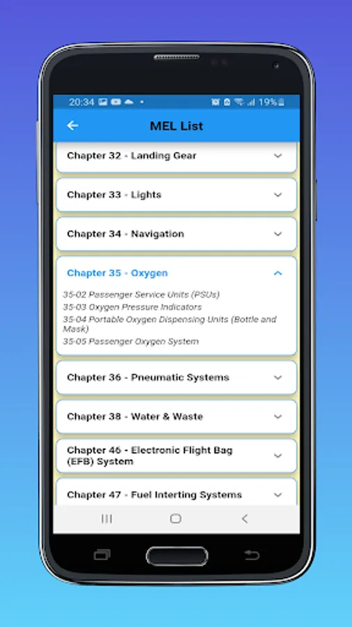 In addition an MEL list sorted by ATA chapter is integrated in the app.