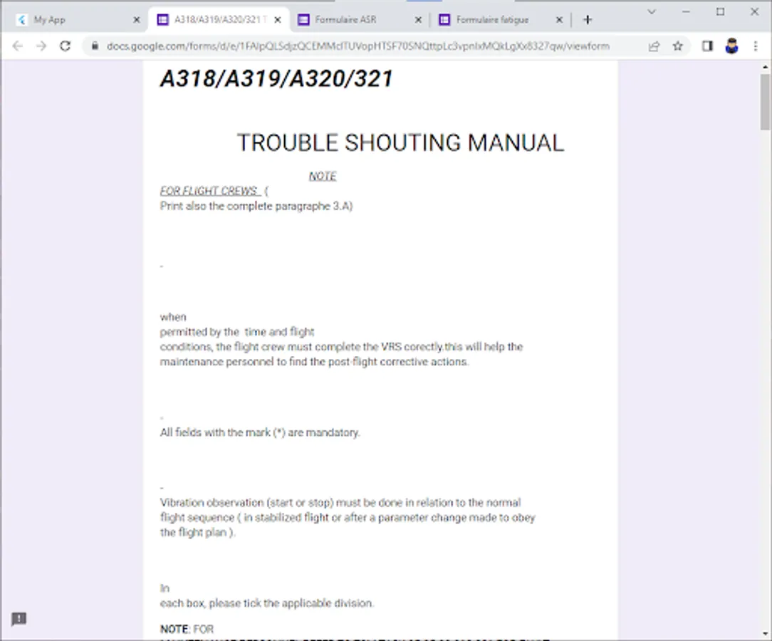 The Pilot Reporting Assistant simplifies the reporting process, eliminating paperwork and providing pilots with a comprehensive and organized platform to submit essential information to their company. With its intuitive design and seamless integration with Google Forms, this app is a valuable companion for pilots, enhancing communication, safety, and operational efficiency.