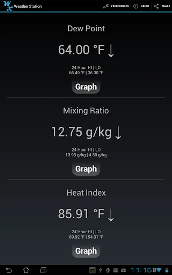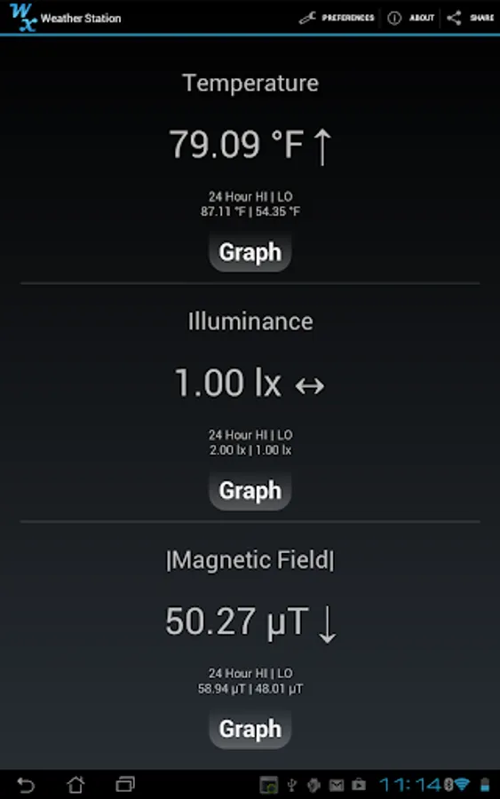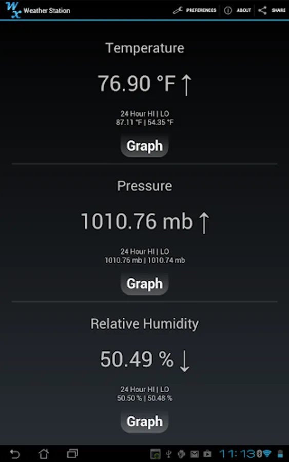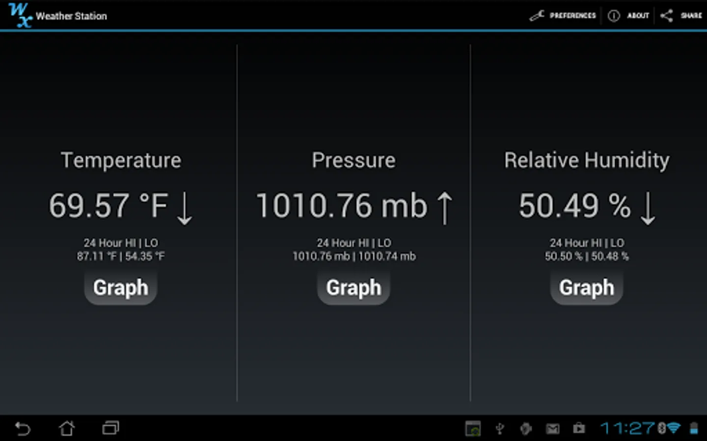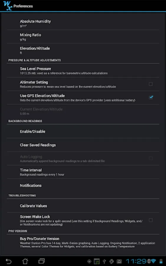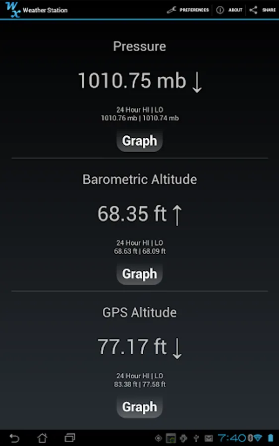 For those who desire more, consider donating by purchasing Weather Station Pro. PLEASE DOWNLOAD THE FREE VERSION OF WEATHER STATION FIRST to make sure your device has the sensors for the types of readings you want.
