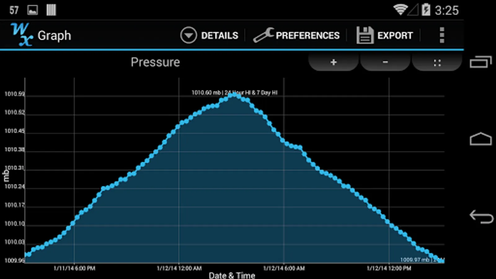 • Graphs with details including 24 hour and 7 day hi & lo markers
