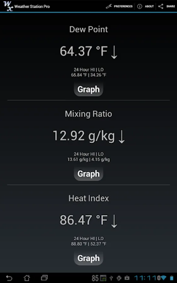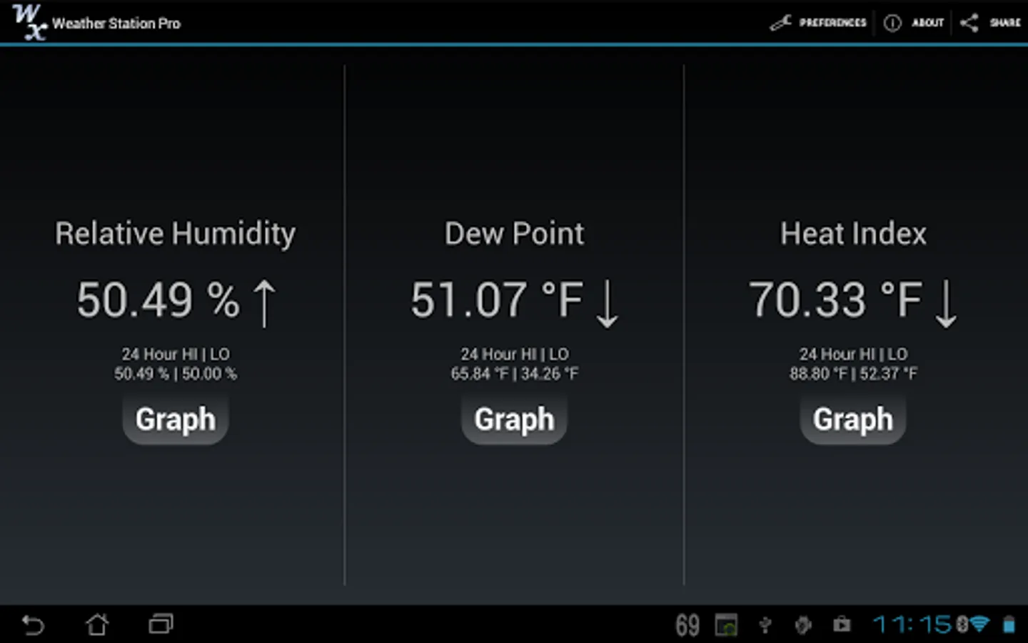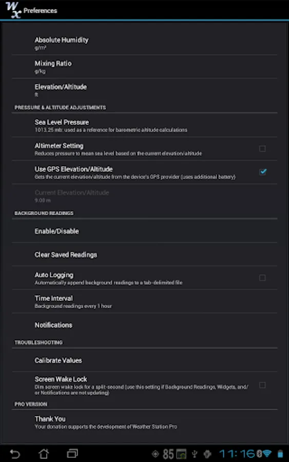 For those who desire more, consider donating by purchasing Weather Station Pro. PLEASE DOWNLOAD THE FREE VERSION OF WEATHER STATION FIRST to make sure your device has the sensors for the types of readings you want.