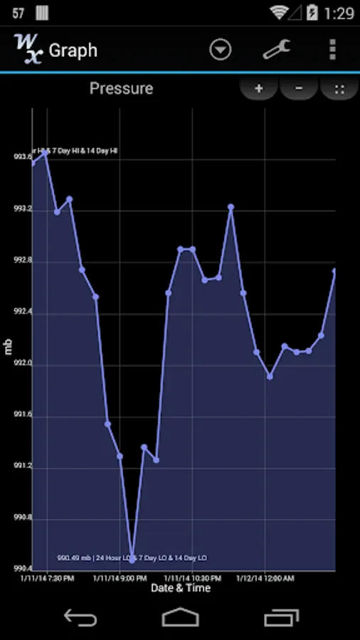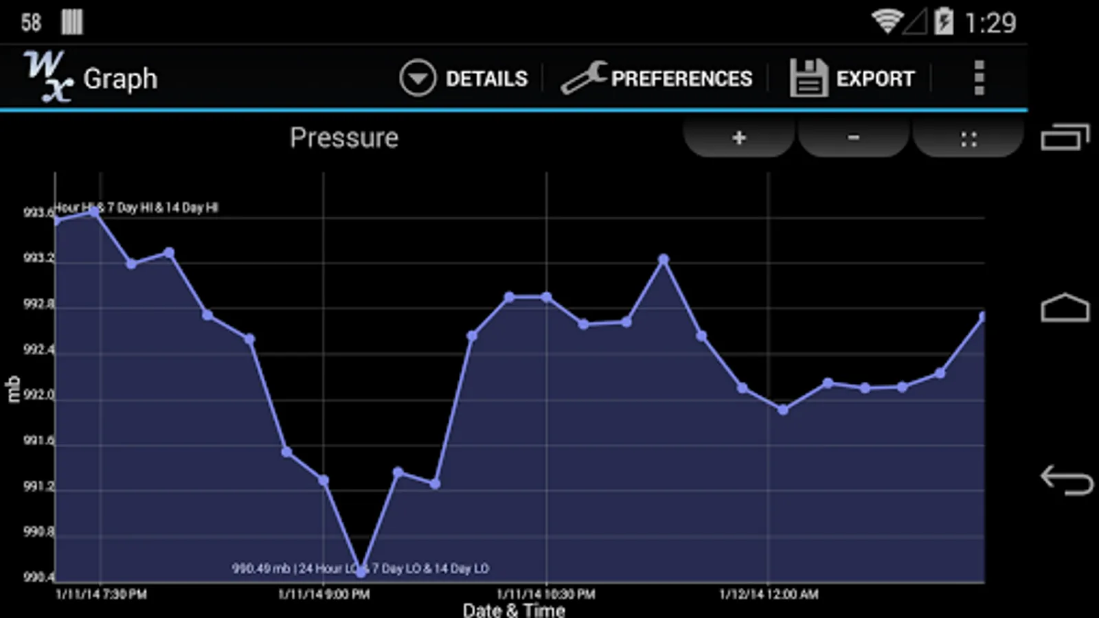• Graphs with details including 24 hour and 7 day hi & lo markers