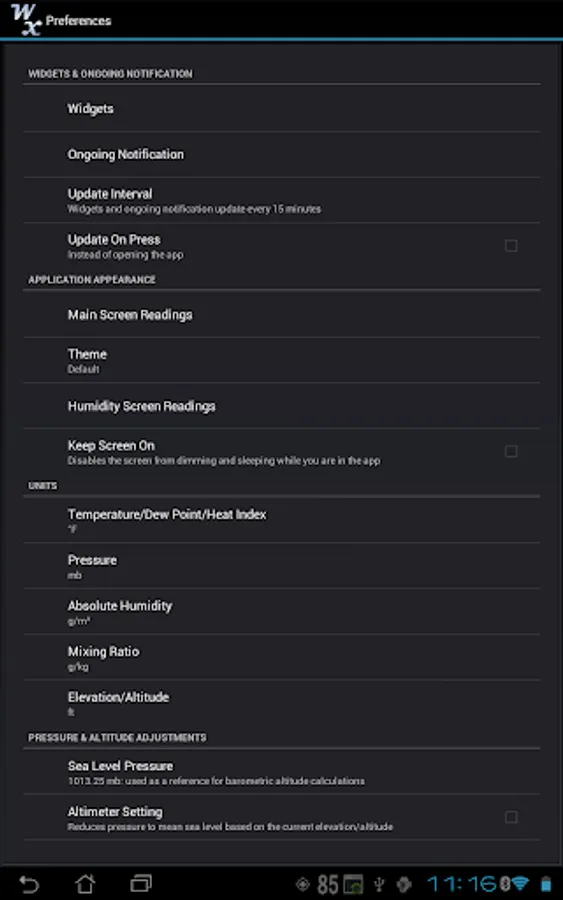 • Pro only: Settings and data from Weather Station v2.0.0 or higher can be transferred to Pro on first start