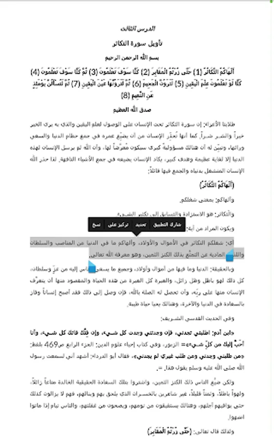 There is also an explanation of the three sayings of the Prophet learn the emerging importance of a god send human Almighty for this world, and teach them good morals and foundations noble .. and cherish the faith and treat people the charity, and not penalized any creature created by God Almighty in this existence, as they learn to preserve what around them, that does not hurt a bird or a plant or animal created by Almighty God, since everything in the presence of God Almighty has been forced to serve the people's happiness.