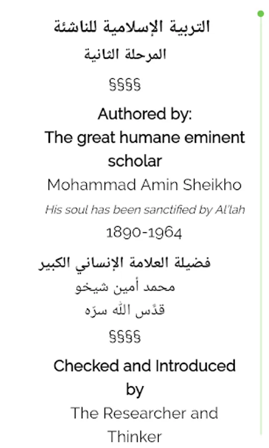 The second book of a series of Islamic education for the youth, humanitarian sign of Galilee Mohammed Amin Shehu Jerusalem secret, to collect and investigate and bring the breeder Professor Abdul Qadir Yahya famous Baldarani.