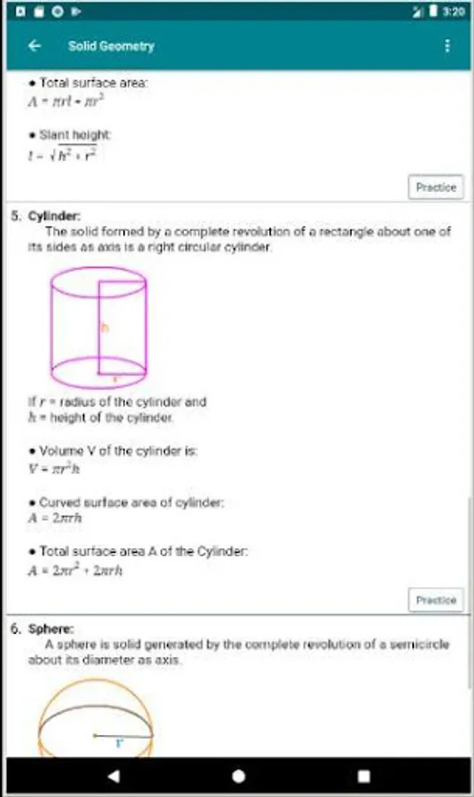 This Geometry formula with practice/example app contains all the basic geometry formulas which has example math with each and clear figures. You can learn the formulas and can practice the uses of the formulas. This will help you in your academic performance and any job preparation. It is helpful for the students of class 1 to 12. This app is most helpful for the students of English medium and English version. The main contents of this application are: