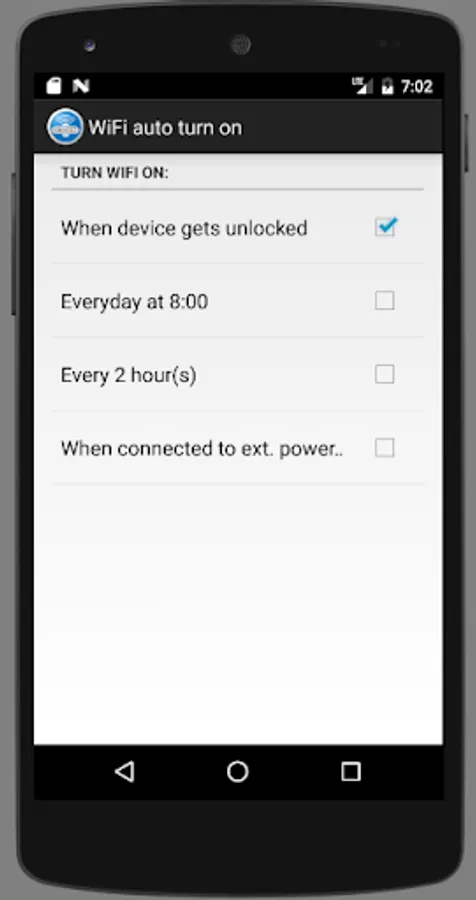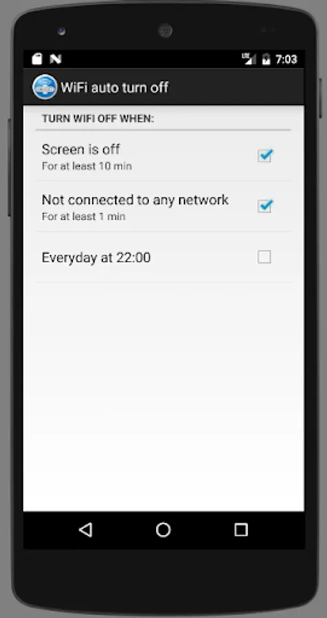 The application "WiFi Auto On Off" allows you to automatically turn on or turn off WiFi. If you want a way to schedule when your WiFi turns on or off on your Android phone, you can try this a free app. This app lets you to set schedules, both for turning your WiFi on and off at a given time and day on your Android smartphone or tablet.