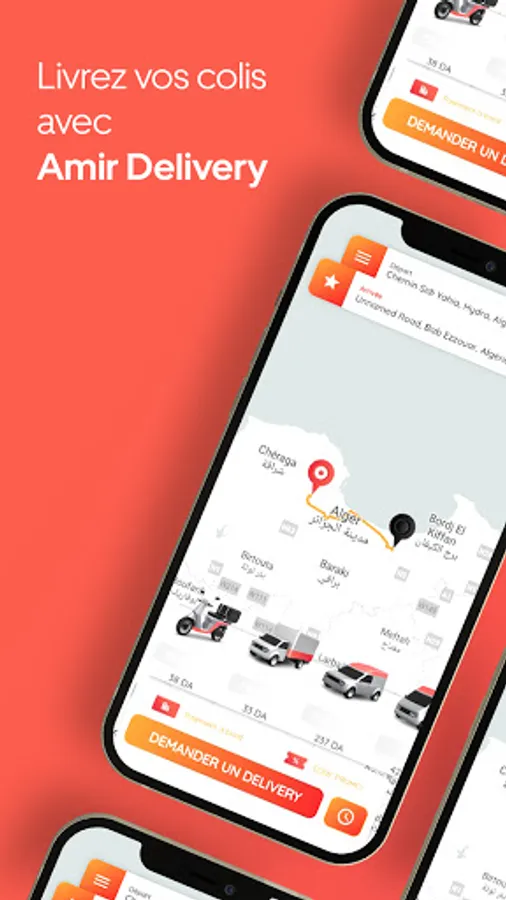 AMIR Delivery is a private delivery service that allows you to request a delivery person in Algiers, Oran, Tlemcen, Constantine, Bejaïa and the main cities of Algeria but also in the big cities of Tunisia and Morocco in a few clicks from your mobile via our mobile application.