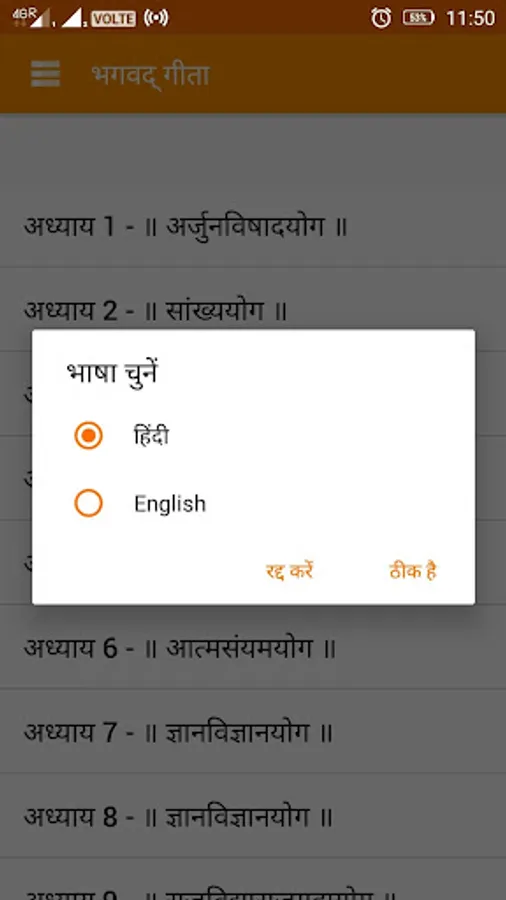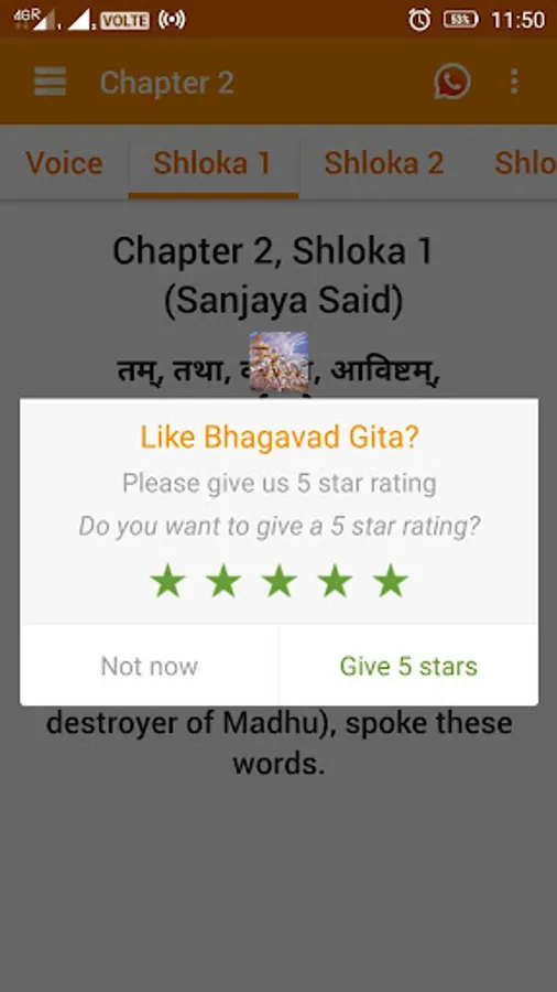 4> Share feature to easily send your favorite Bhagavad Gita shloka / verse to your friends.