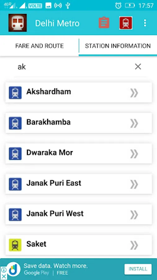 > Get metro info like - (Station Contact,Gate and Platform, Train timing, Parking charges and Nearest spots).