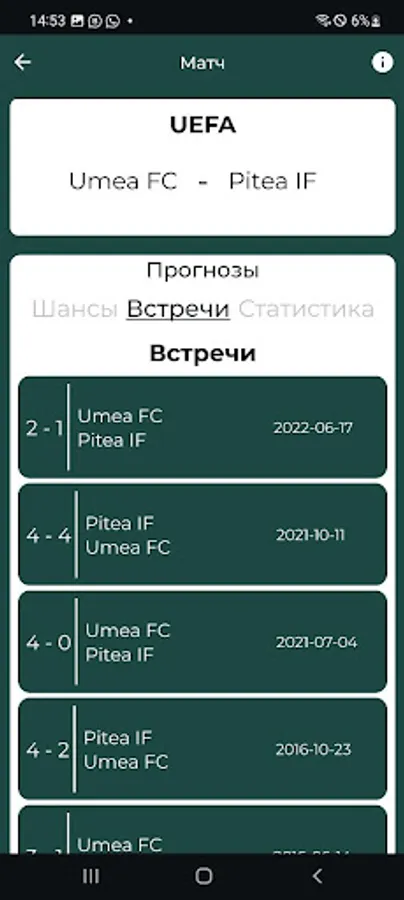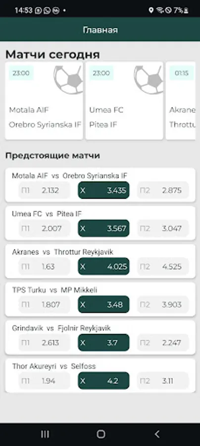 Глубокий анализ матчей. Наше приложение использует передовые алгоритмы и множество различных источников информации для анализа каждого матча, включая статистику игроков, состояние команд и многое другое.