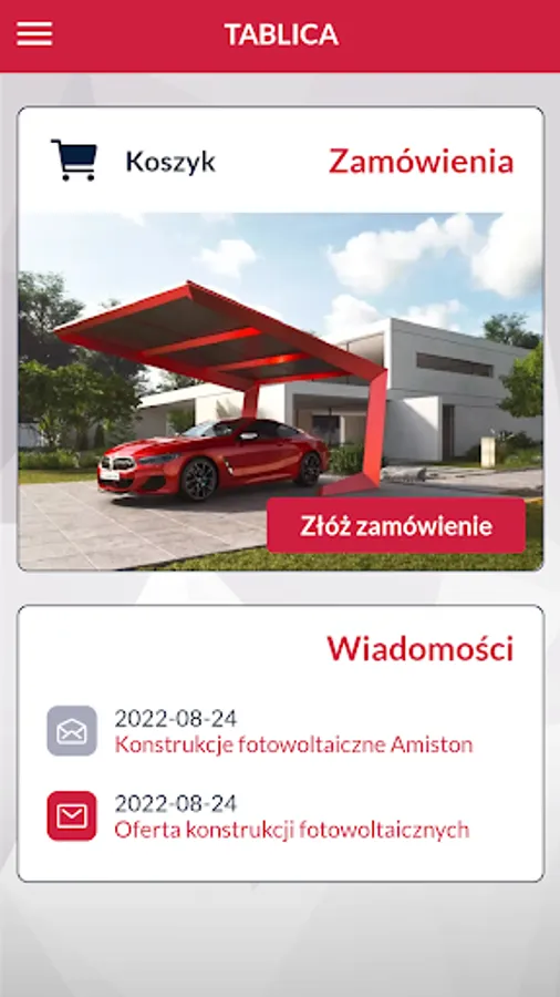 In the Amiston application you will find the full offer of Photovoltaic Structures and Carports. Thanks to it, you can make a purchase quickly.