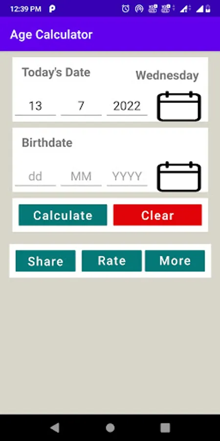 • There is no need of typing today's date *age Calculator* automatically get today's date.