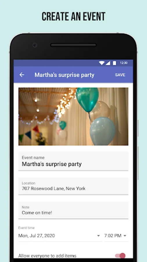 • Invite friends to your events by sharing an invitation in an email, SMS, WhatsApp, or Facebook post!