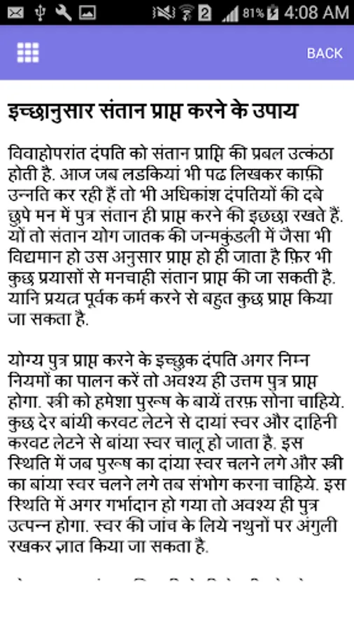 Sometimes there are medical reasons why a child of a particular gender is preferred. The Santan Paane Ke Upay Hindi application is written in Hindi for Hindi readers. The app contains quick and affordable remedies to bear a child.