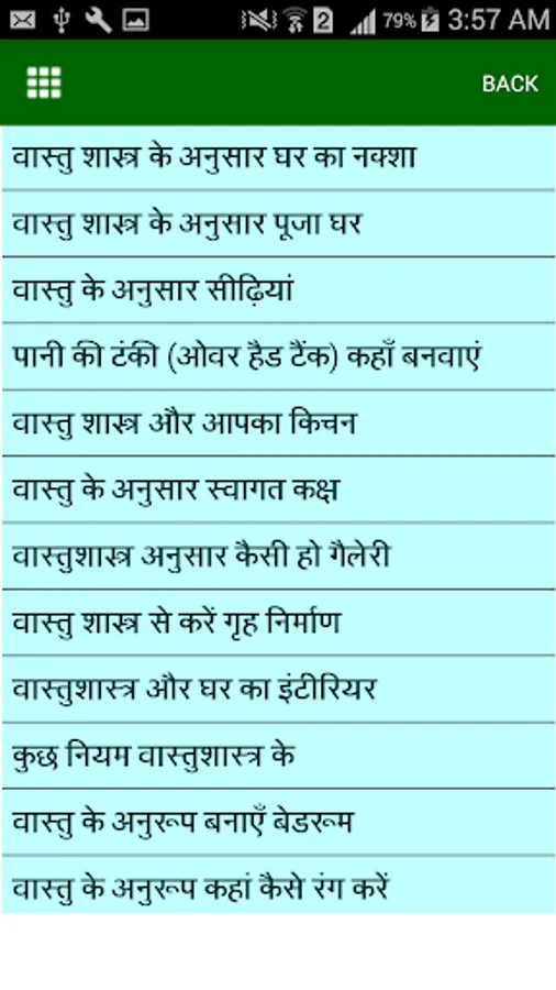 The application has a large collection of Vastu Shastra tips in Hindi language. By following these tips you can get positive energy at home or workspace which can lead to a peaceful life. There are thousands of vastu tips for home, office and workspace, career , health, wealth and many more. You can enhance positive effects of elements in various rooms of your home.