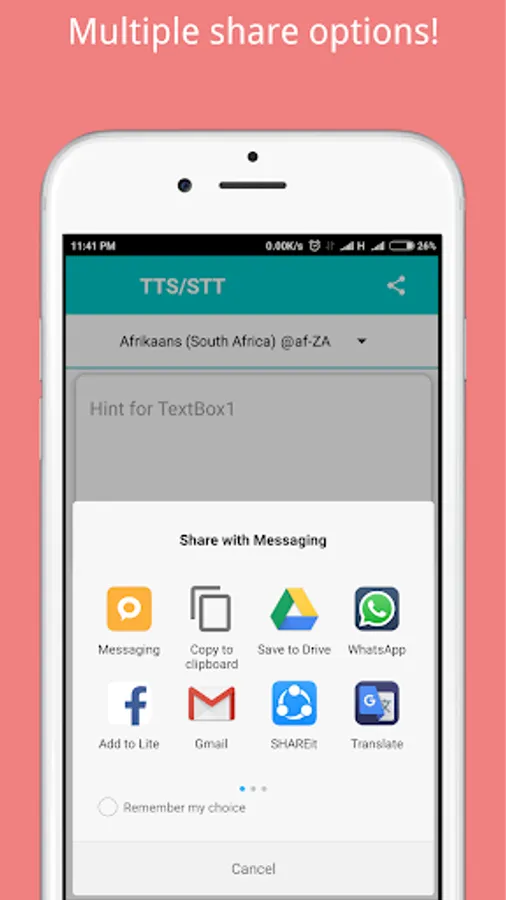 Get off from boaring typing.Our app make easy to type faster on mobile only by talking.It has also feature of text to speech.If you want to type something then talk to phone .