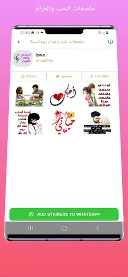 🎀 ملصقات الحب والعشق الجديدة لتطبيق ملصقات للواتساب 2021 يجلب لك أفضل حزمة ملصقات لتطبيق واتساب ، يمكنك مشاركة حزم ملصقات حب رومانسية مع أصدقائك وعائلتك وزملائك في العمل ...