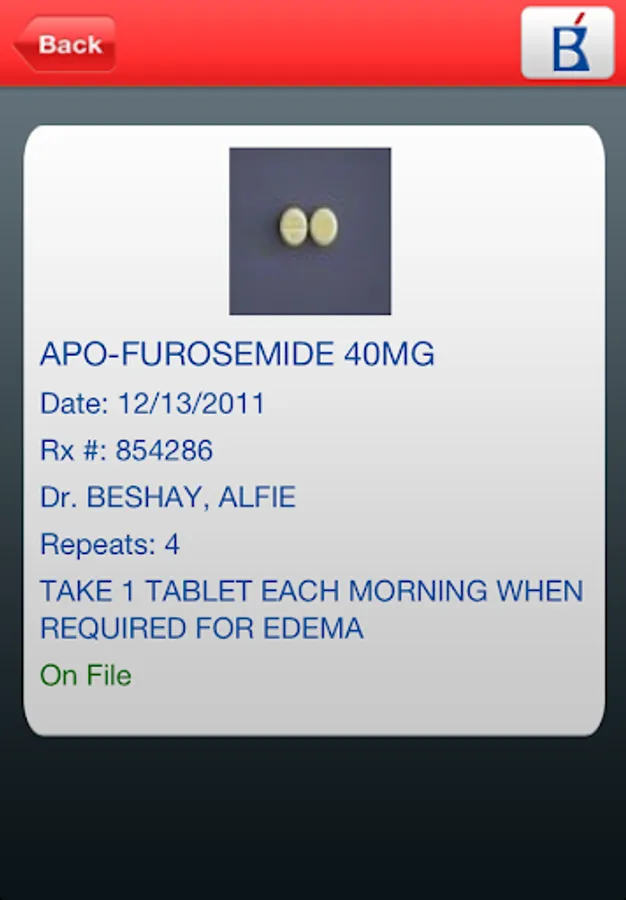 Profile Login: Login using a card number and PIN issued to you by your pharmacy. See your current prescription profile on your device. Place order by simply click the check-box next to your prescription.