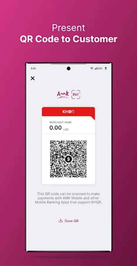 “AMK PAY” is a Mobile Merchant Application which will be used by customer who is a merchant of AMK Microfinance Institution Plc (refer to as AMK) in Cambodia. AMK is a Microfinance deposit taking institution licensed by National Bank of Cambodia. AMK has been granted with a MDI license to operate financial services in Cambodia and we provide variety of financial services including: Credit, Non credit, Fund transfer, Bill payment, and other financial services.