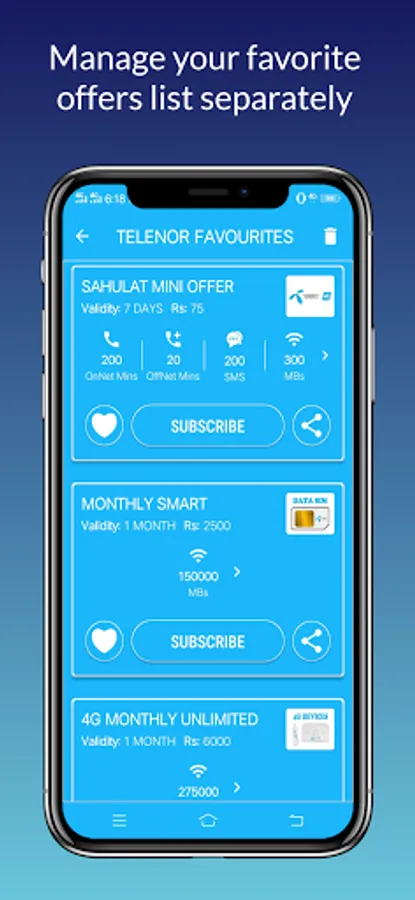 All packages given below are daily, weekly and monthly basis. You can find information of the following packages and offers in this app: