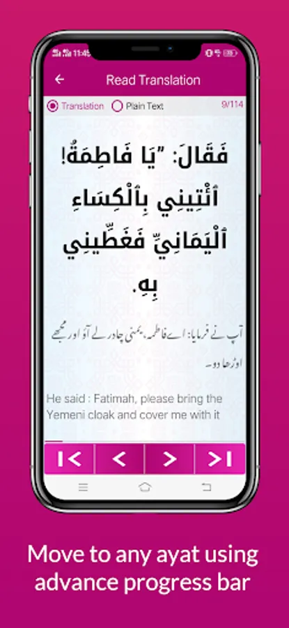 • Move to favorite ayat by navigating progress bar