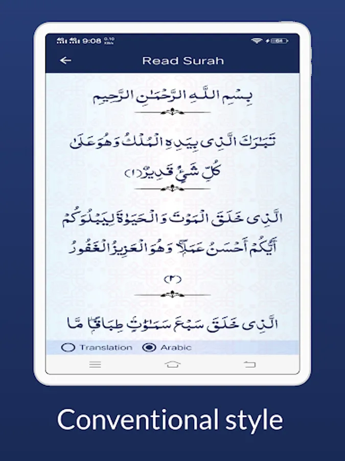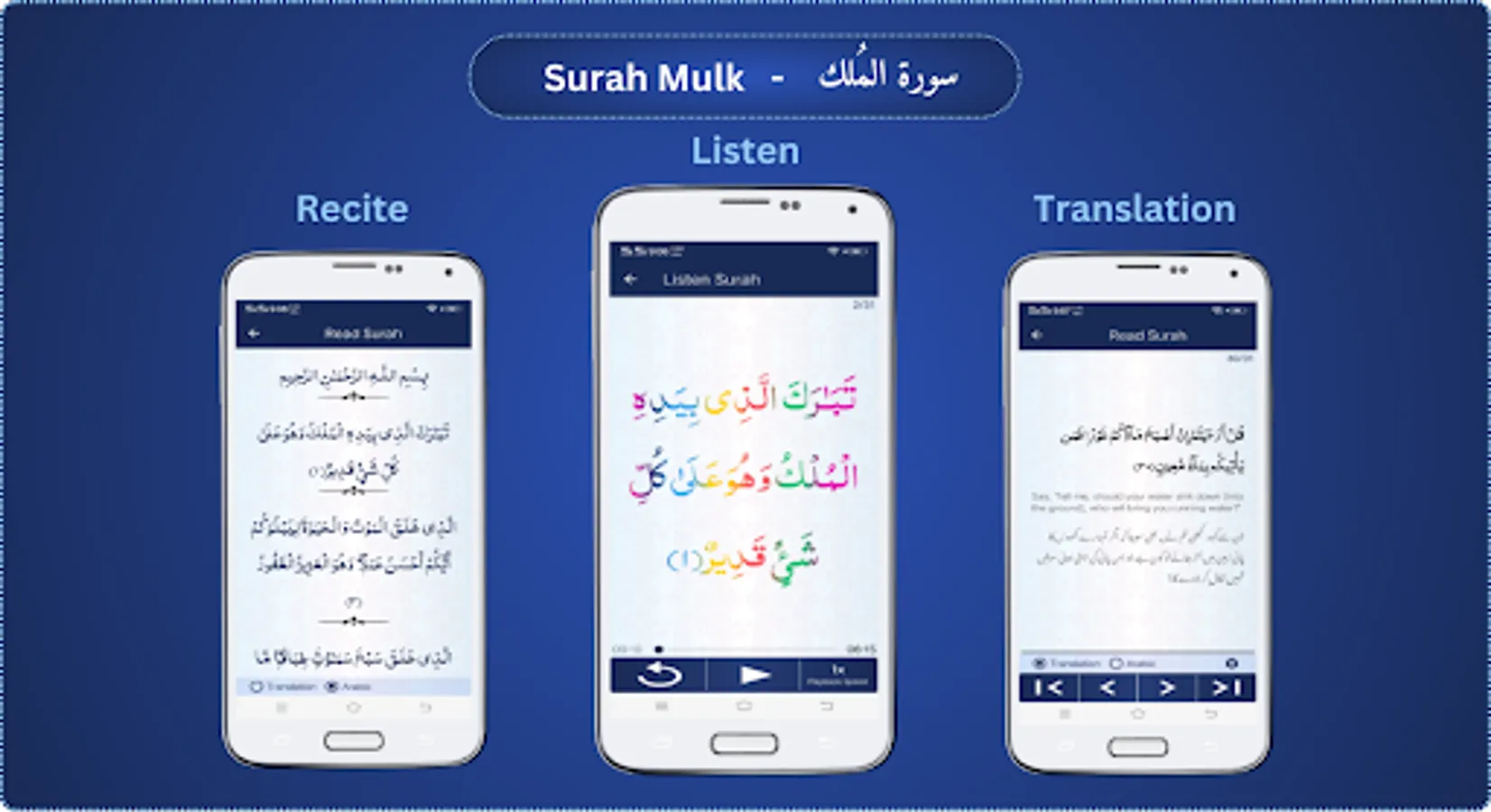- Read Surah Mulk in conventional manner in distraction free Arabic mode