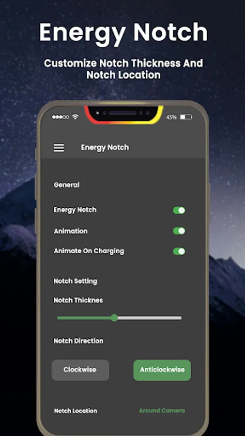 Try the All New “Energy Notch" app and enjoy your phone in completely new screen with Different stylish themes.