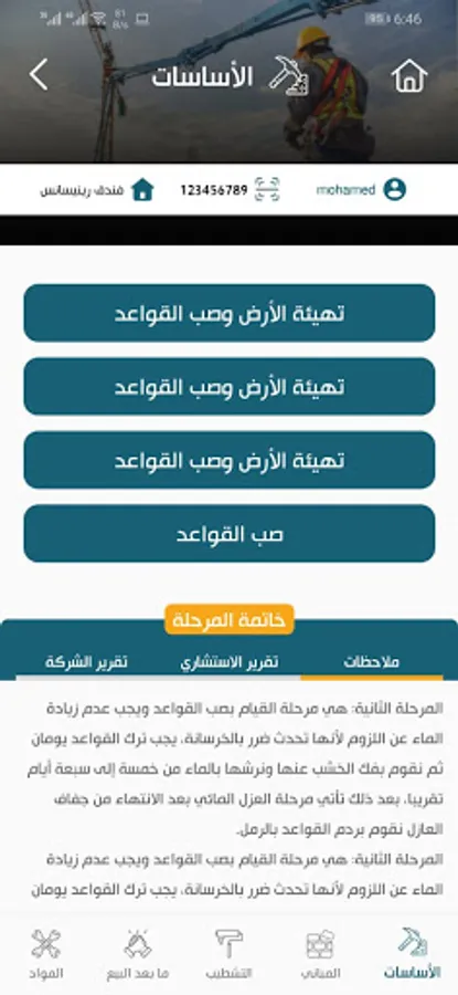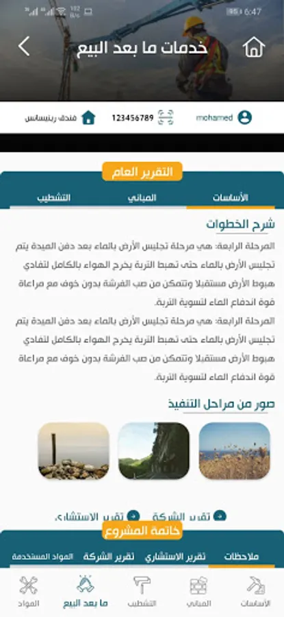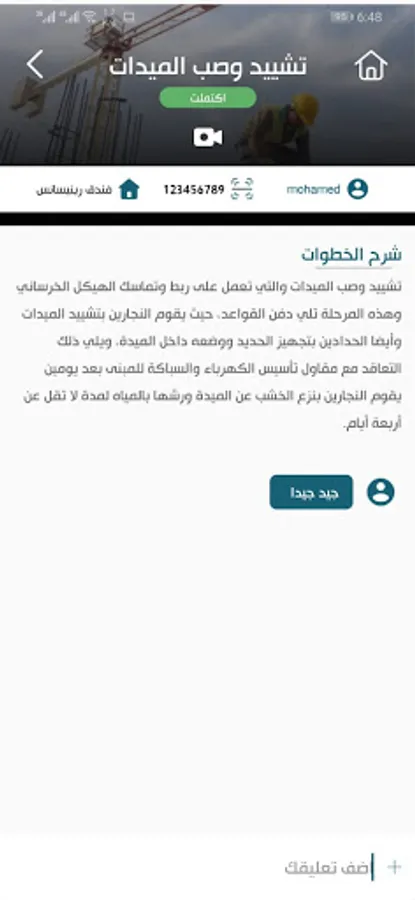 تطبيق مختص في المقاولات واعمال البناء من اجل تجربة بناء فريده من نوعها، حيث نوفر للعميل امكانية متابعة البناء بالفيديو و الصورة ، ومتابعة مراحل المشروع وترك التعليقات ومعرفة جميع مايخص مشروعك التجاري بالتفصيل اضافة الى العديد من الخدمات منها خدمة ما بعد البيع وتتضمن امكانية عرض مراحل المشروع بالتفصيل بطريقة تسويقية مبتكرة في حال رغبة العميل ببيع العقار .
