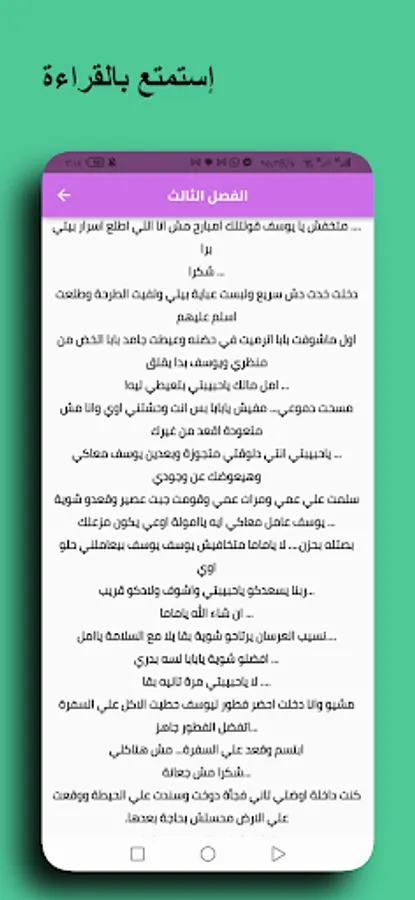 This application is characterized by being easy to browse and read. You can also share the application with friends. Easy and comfortable reading and writing. Easy navigation between the chapters of the narrator.