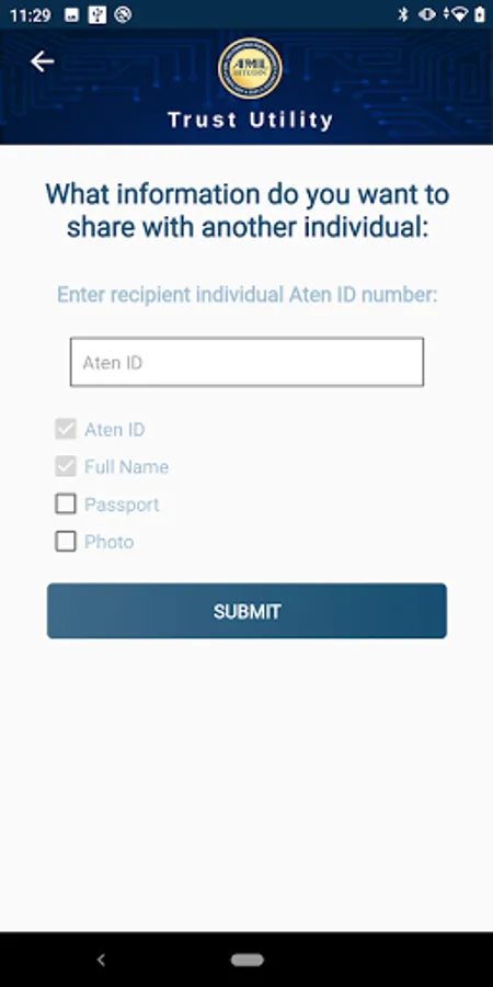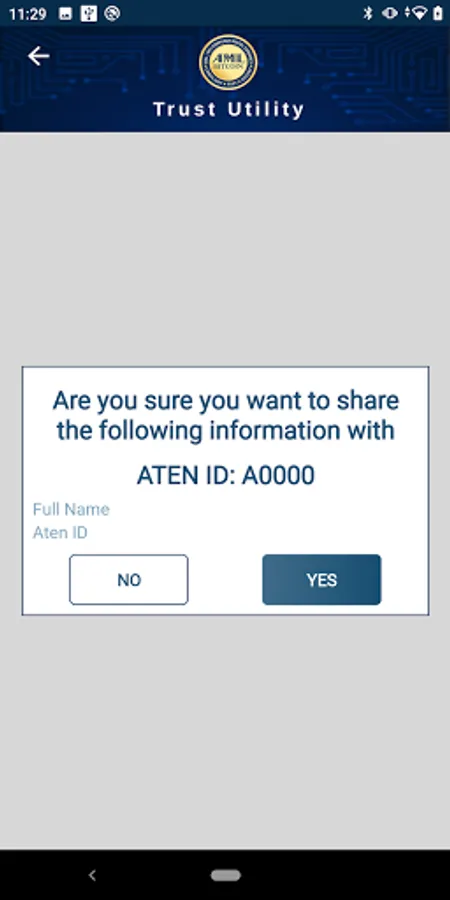 If you are talking to someone and they want to confirm you are who you say you are, then you can ask them for their personal identification number (Aten-ID) and then insert it in your mobile application in the Share Profile section. Select what you want to share, then do a biometric to confirm it is you that wants to share the data. At any time you can revoke access to your data.